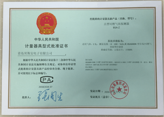 我公司是青島市具有國家質(zhì)量技術(shù)監(jiān)督部門頒發(fā)的計(jì)量器具生產(chǎn)許可證的生產(chǎn)企業(yè);獲得國家防爆電氣產(chǎn)品質(zhì)量監(jiān)督檢驗(yàn)中心頒發(fā)的防爆合格證;獲得國家公安部消防產(chǎn)品合格評定中心頒發(fā)的消防產(chǎn)品形式認(rèn)可證書。